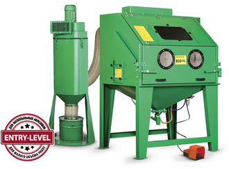 Эжекторная пескоструйная камера Contracor ECO-140S поставляется в минимальной комплектации. Очистка фильтрующего элемента происходит вручную, открытием и закрытием шарового клапана. Камера подойдёт для обработки малогабаритных деталей из различных материалов абразивами с низкой пыльностью.