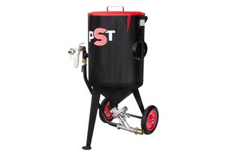 Пескоструйный аппарат PST-100-2 комплектуется фильтром-влагомаслоотделителем, дозатором шиберного типа, предназначенным для работы с наиболее распространенными абразивными материалами, такими как кварцевый песок, купершлак, никельшлак, гарнет и пр. с размером частиц от 0,1 до 2,5мм.